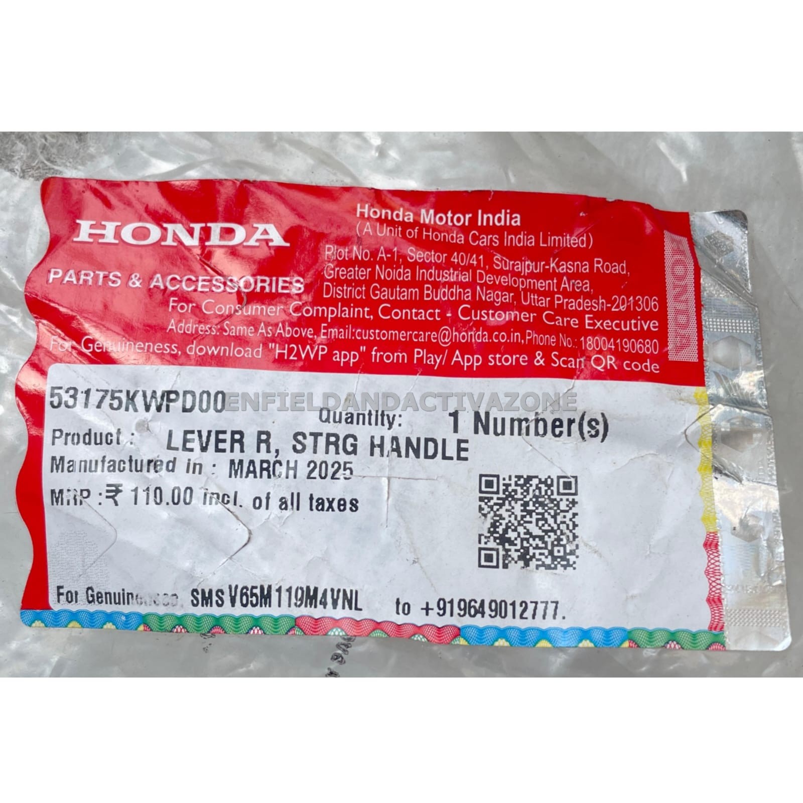 Authentic Packaging: Shipped in original Honda Genuine Parts & Accessories packaging with a verifiable security hologram.