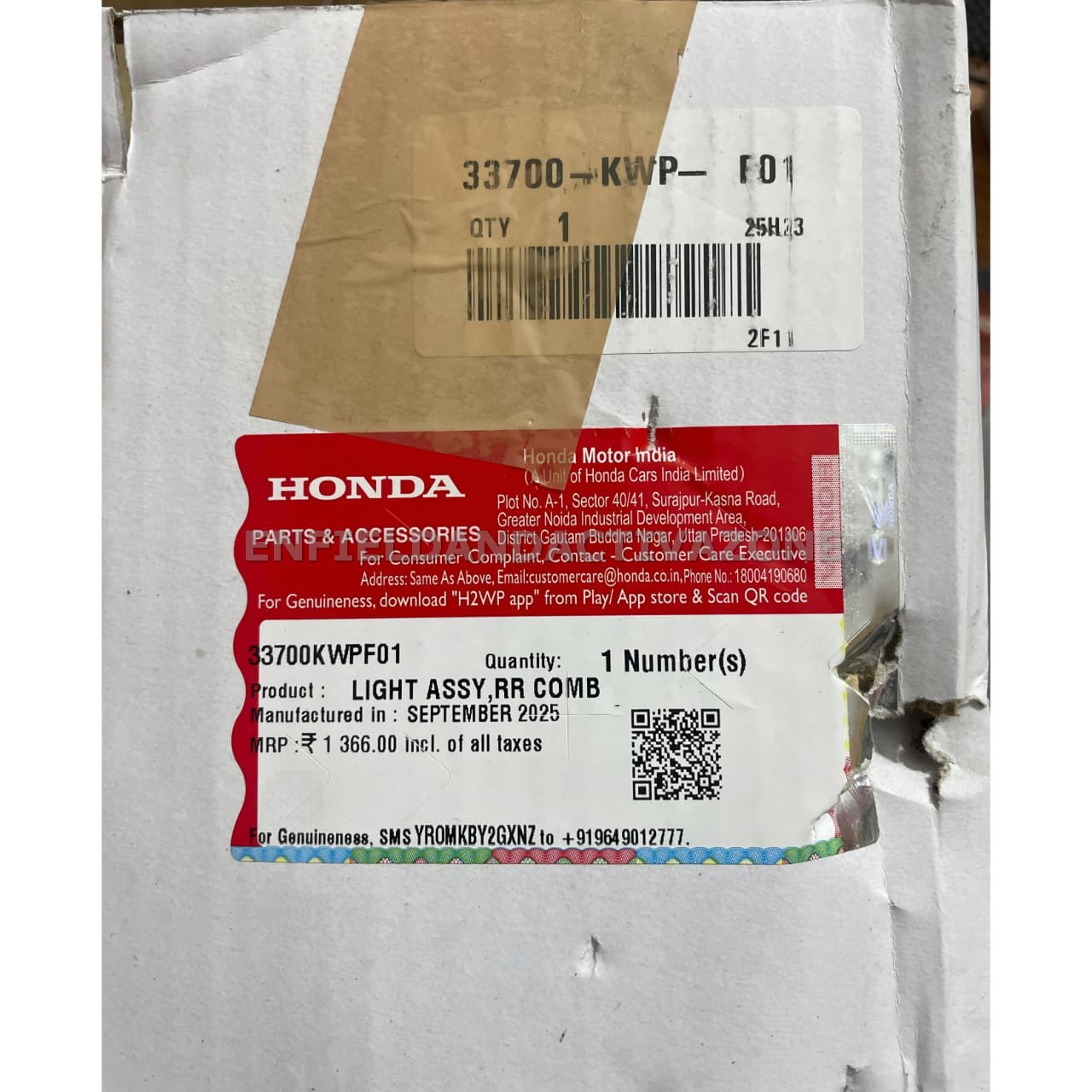 Authentic Packaging: Comes in original Honda Genuine Parts & Accessories packaging with a verifiable security hologram.