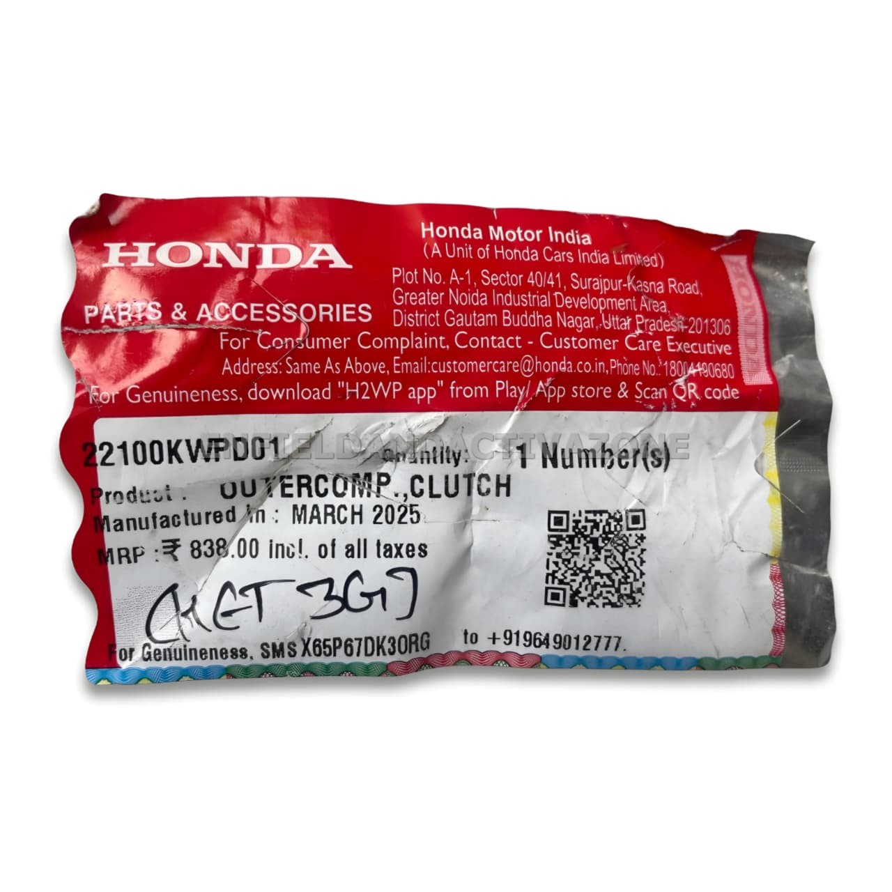 Authentic Packaging: Shipped in original Honda Genuine Parts & Accessories packaging with a verifiable security hologram.