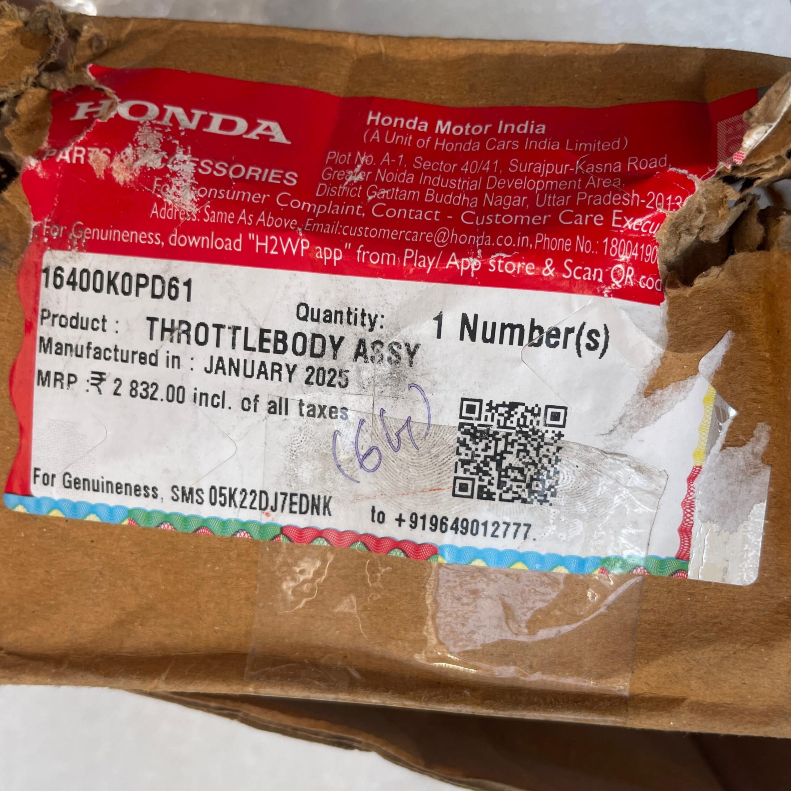 Secure Packaging: Comes in official Honda parts branding with a unique QR code for verified authenticity.