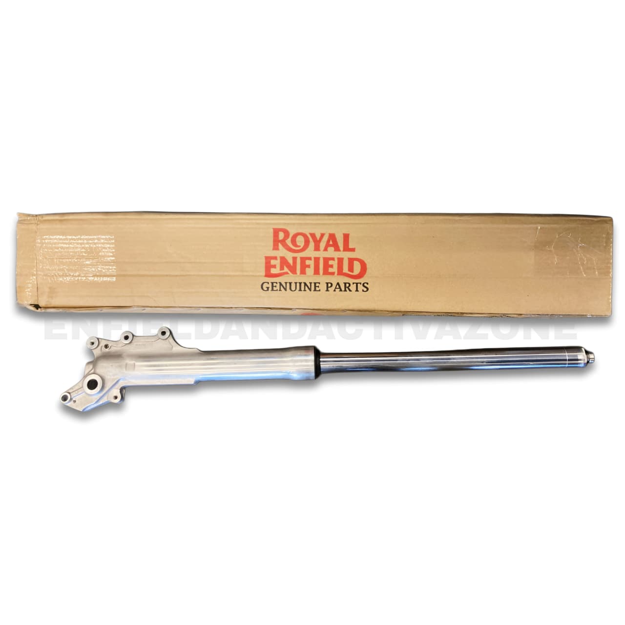 The RAH00022/B is a fully assembled unit featuring a hard-chromed inner stanchion pipe and a durable silver-finish outer slider. As the left-side component, it features the specific mounting points for the front mudguard stays and is designed to work in perfect synchronization with the right-side (disc-side) leg to maintain straight-line stability. Each assembly is pre-filled with the correct grade of factory fork oil and fitted with genuine oil seals to ensure immediate, leak-free performance. Whether you are repairing damage from a front-end impact or replacing a deeply pitted pipe that ruins seals, this genuine assembly restores the plush, vibration-free ride quality your Royal Enfield was built for.