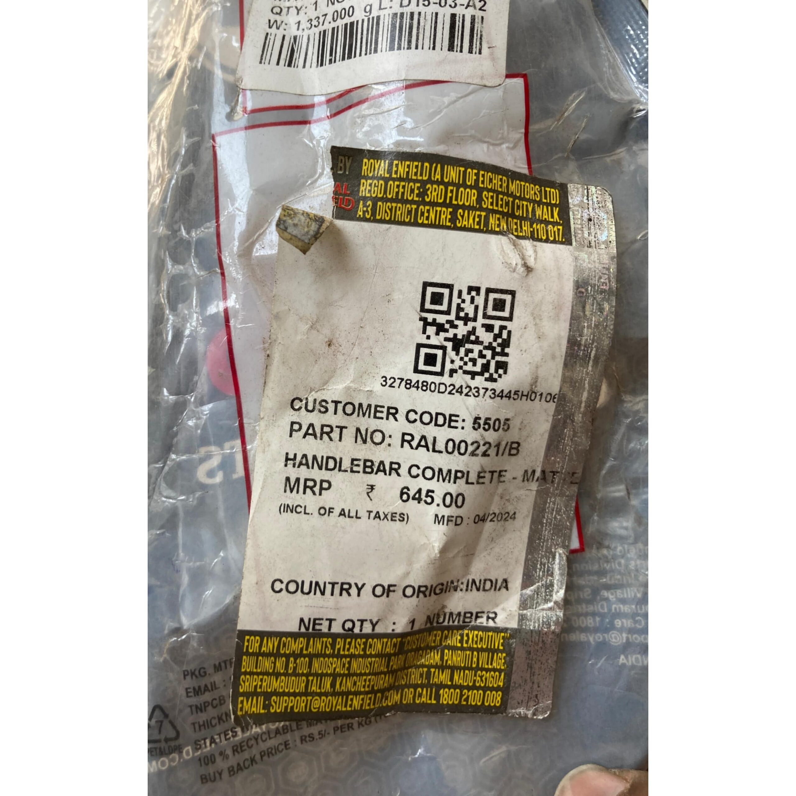 Verifiable Authenticity: Supplied in official Royal Enfield packaging with a unique QR code for guaranteed genuine part verification.