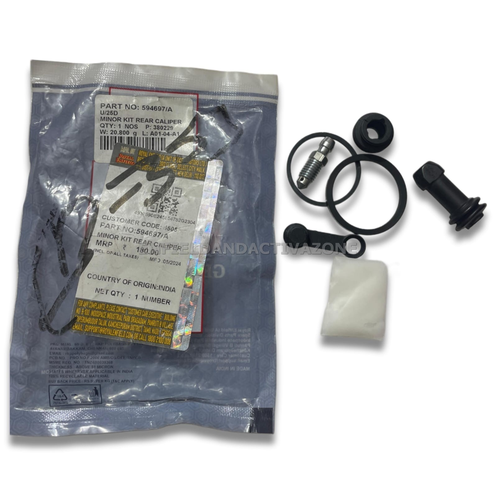 This kit contains high-grade internal piston seals (oil seals) and external dust boots, which are vital for maintaining hydraulic pressure and preventing road grime from seizing the caliper. Replacing these seals is the standard procedure for fixing “spongy” brake pedals, slow brake return, or fluid seepage around the rear wheel. Manufactured to Royal Enfield’s exact specifications, it ensures that your rear brake remains reliable and responsive during city commutes or long tours.