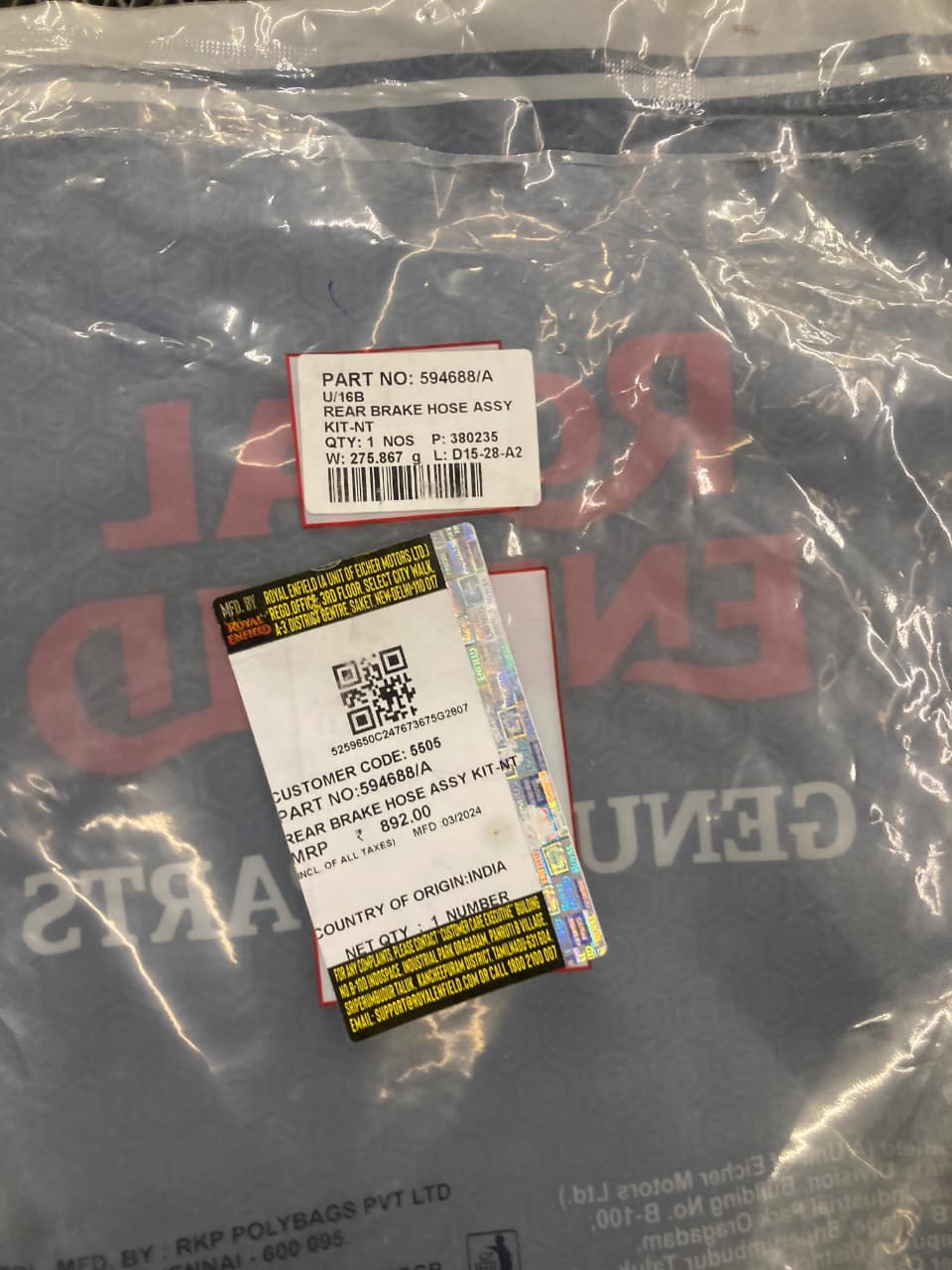 As a genuine Royal Enfield spare, it features precision-crimped banjo fittings that guarantee a leak-proof seal. Replacing a weathered or cracked hose with this OEM unit is a critical safety step, especially before long tours or during a complete brake system overhaul.