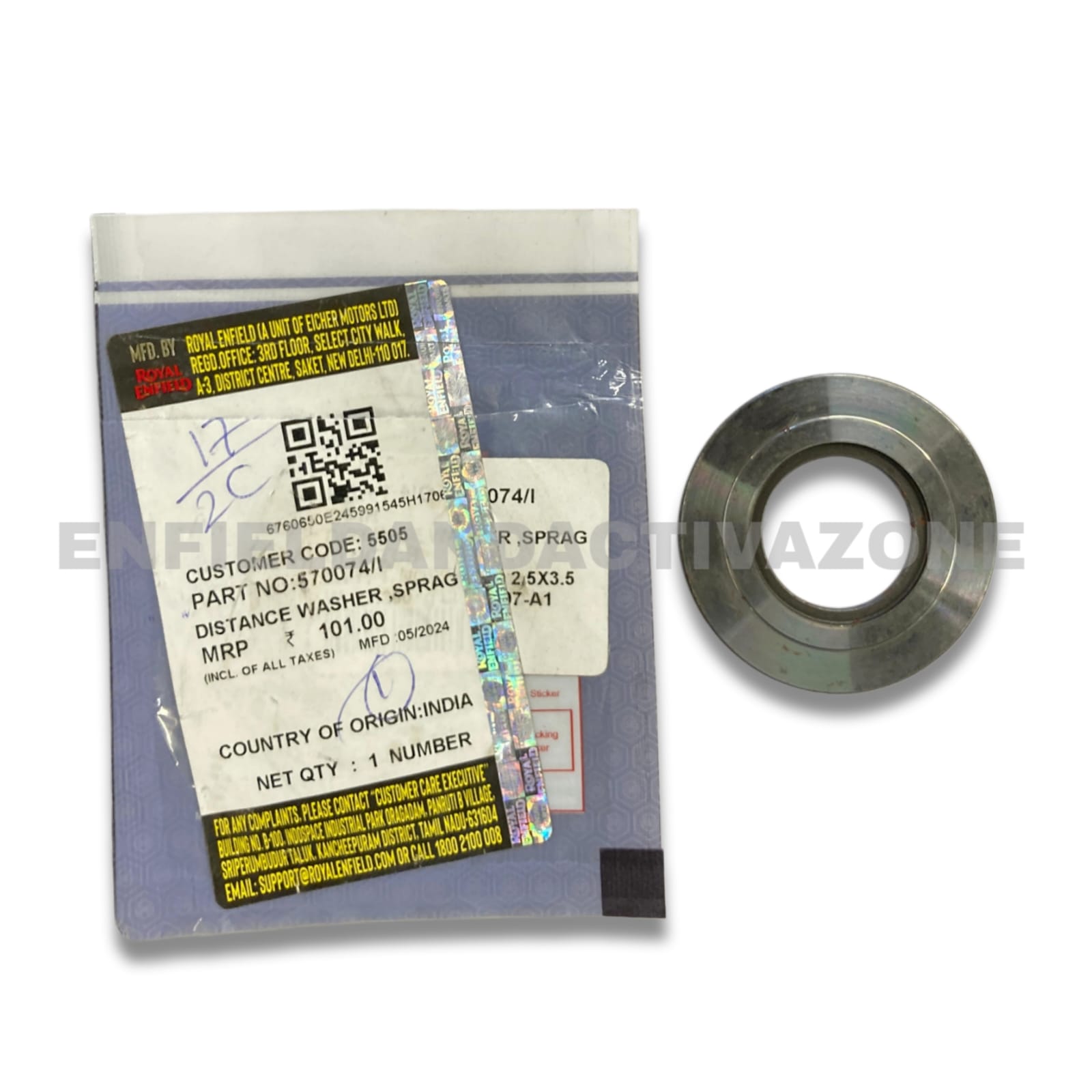 Ensure the smooth operation and longevity of your electric start system with the Genuine Royal Enfield Sprag Clutch Distance Washer. This OEM precision component (Part No: 570074/I) is a critical spacer used within the sprag clutch (one-way clutch) assembly on the Unit Construction Engine (UCE) platform.