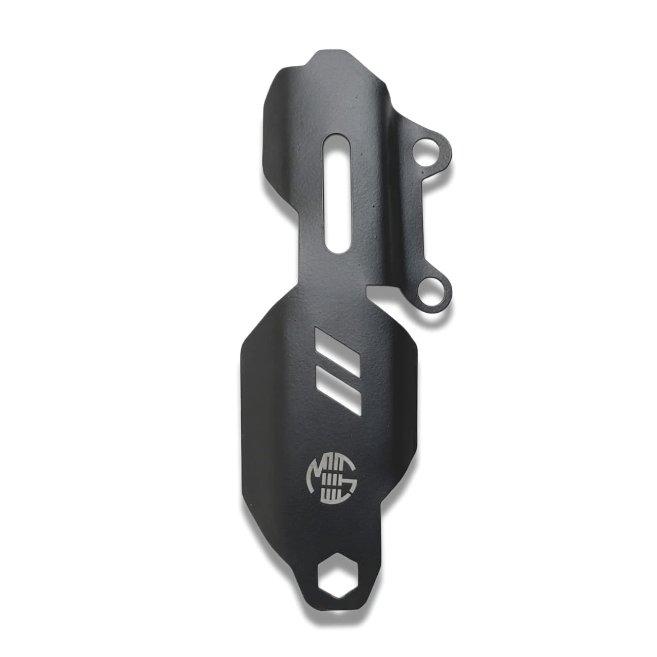 The EAZ Master Cylinder Guard is a precision-engineered protective cover that fits over the rear brake fluid reservoir and master cylinder assembly. Given the low-slung stance of the Super Meteor 650, this component is particularly vulnerable to gravel kicked up by the front tire. This guard, manufactured by EAZ, is laser-cut from high-grade mild steel to provide a perfect fit and a “tank-like” defense without interfering with the brake pedal’s movement or heat dissipation.