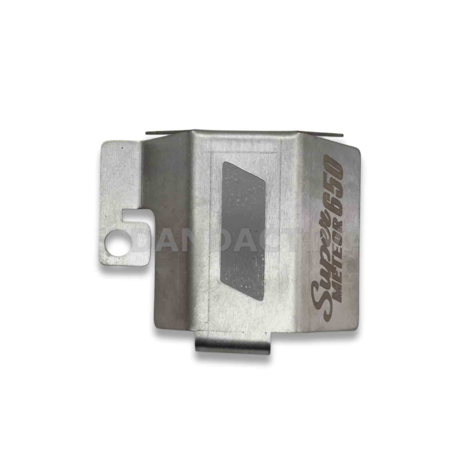 The EAZ Rear Oil Container Guard is a rugged protective shield designed to encase the vulnerable rear brake fluid reservoir. Given the Super Meteor 650’s low-slung stance, the plastic oil container is highly exposed to flying stones, gravel, and accidental impacts. Crafted from high-grade stainless steel, this guard provides a “wrap-around” defense while the laser-cut window allows you to monitor fluid levels at a glance. Its brushed steel finish perfectly complements the premium metallic accents of the Super Meteor.